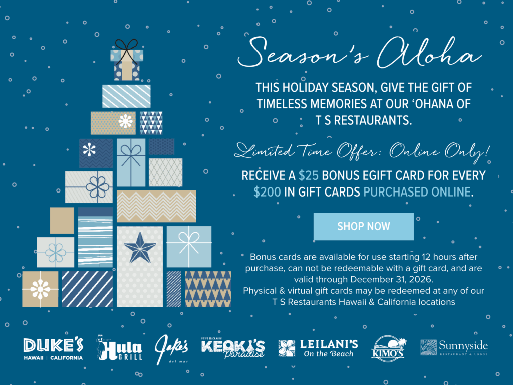 Duke’s La Jolla is named in honor of native Hawaiian Duke Kahanamoku, an Olympic swimming and water polo medalist and the father of modern surfing. Overlooking the La Jolla Cove, Duke’s serves genuine, friendly hospitality with contemporary interpretations of traditional island plates. As a tribute to Hawaii and Southern California beach lifestyles, Duke’s celebrates family, views and the spirit of aloha. We welcome our guests to become a part of our ’ohana.